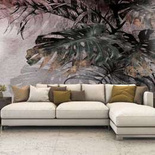 Fototapeta 3D do Salonu Liście Beton Zieleń Brąz Beż
