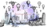 Fototapeta Romantyczna podróż balonem nad miastami TRAVEL 2