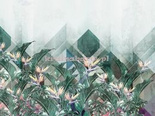 Fototapeta Tropikalne duże liście kwiaty i papugi PARADISE II