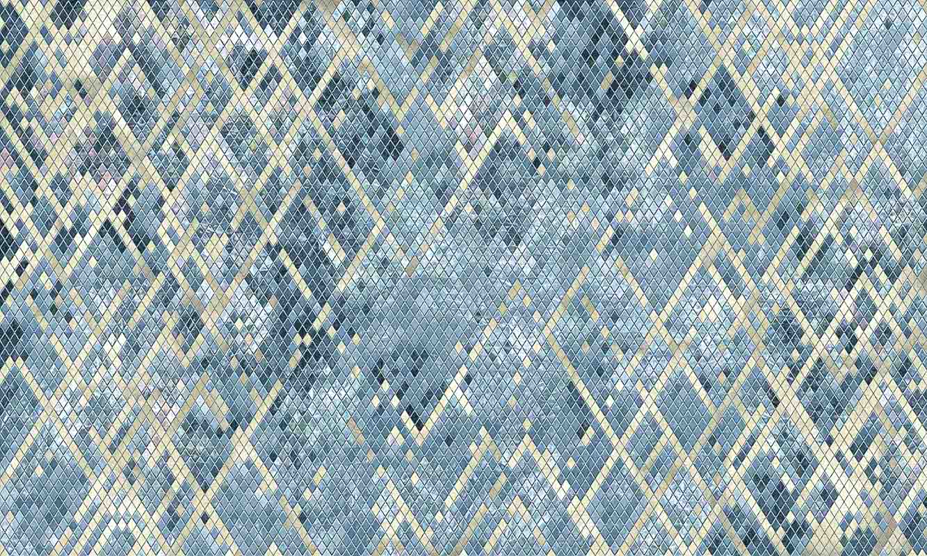 Fototapeta z nowoczesną grafiką, z wyczuwalną w dotyku strukturą, sprawia wrażenie głębi i przestrzeni tworząc efekt 3D. Malownicza mozaika składająca się z małych rombów w odcieniach granatów, zieleni, fioletów, beży, brązów z zachwycającymi, pięknymi kwiatami irysów w odcieniach koloru niebieskiego, fioletowego, beżowego stworzy unikalne i zjawiskowe wnętrze.