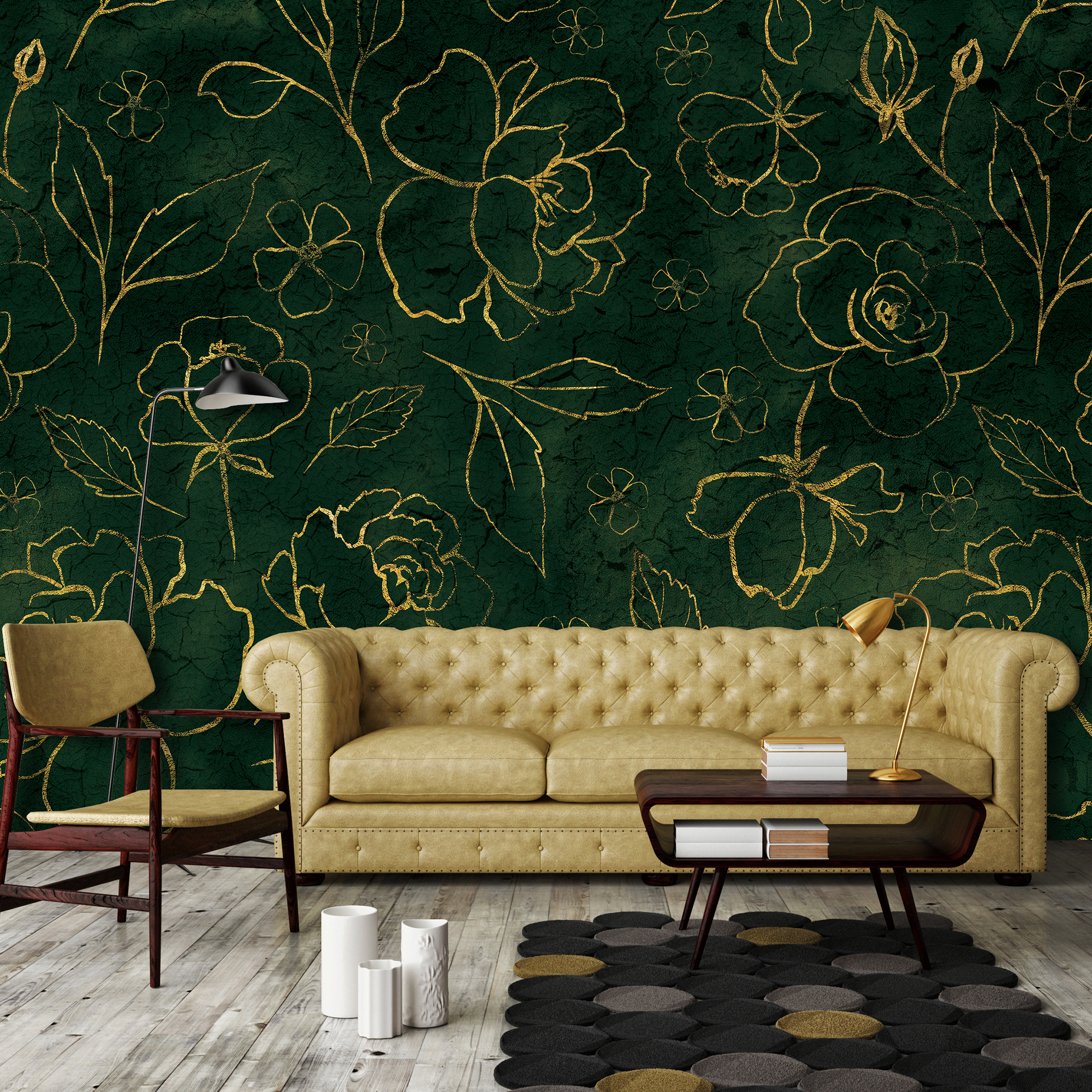 liście natura kwiaty zieleń złoty złoto wzór luksusowy