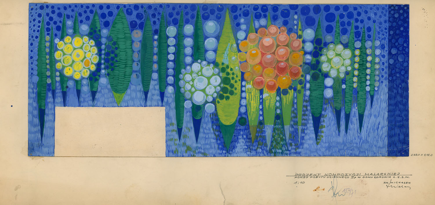 Oryginalny projekt malowidła ściennego autorstwa Franciszka Michałka, który powstał w latach 60. i 70. jako koncepcja dekoracji ściennej w sanatoriach w Ciechocinku oraz wnętrzach publicznych we Włocławku i okolicach.