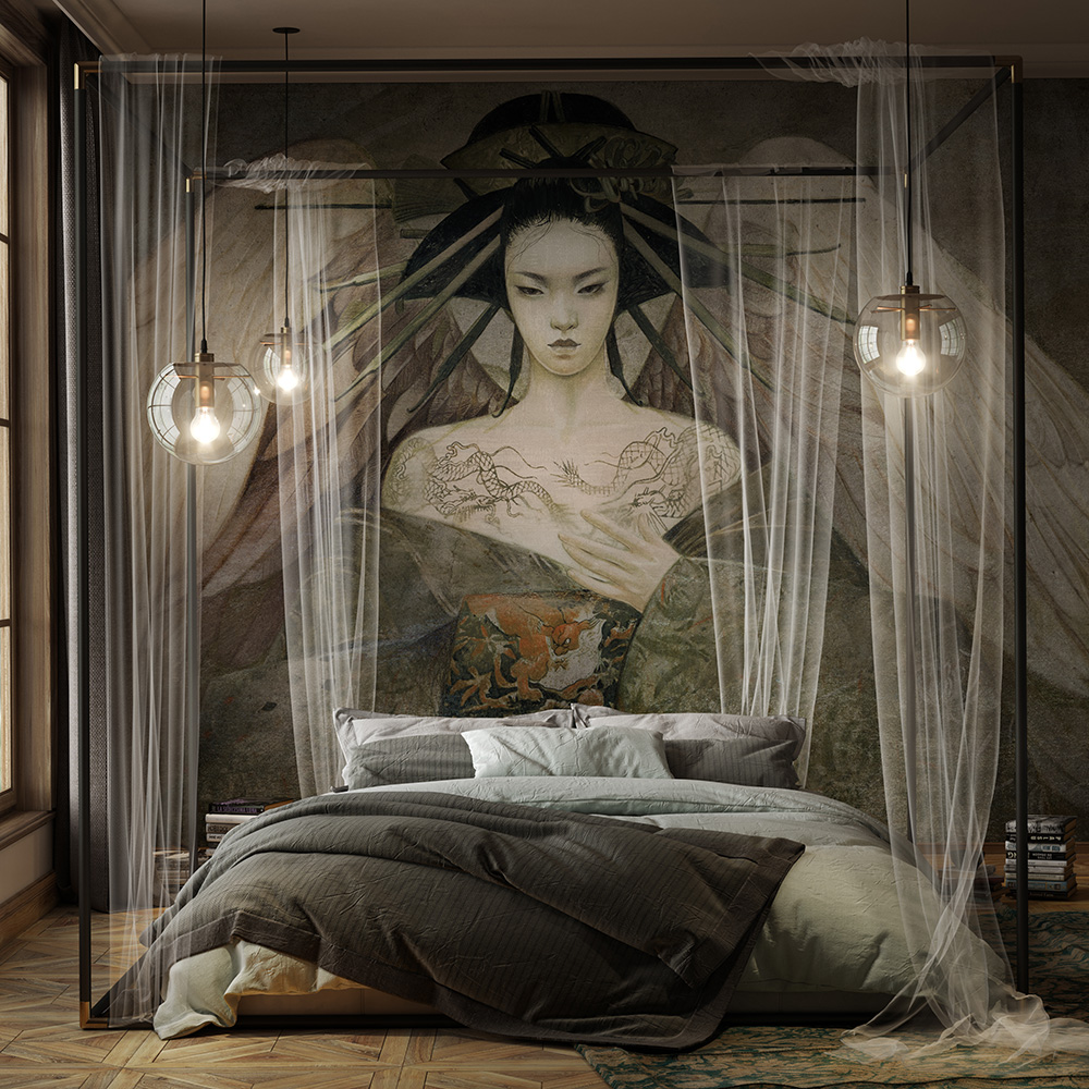 kobieta, twarz, skrzydła, Japonka, azja, luksusowe, Wonderwall Studio, ekskluzywne, grafika