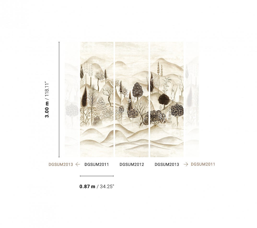 Zdjęcie z aranżacją przestawia trzy panele Munnar Taupe: DGSUM2011, DGSUM2012, DGSUM2013